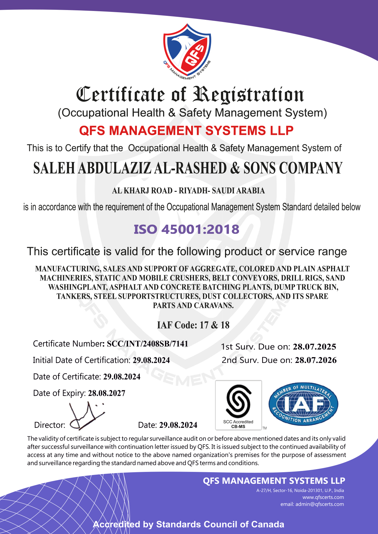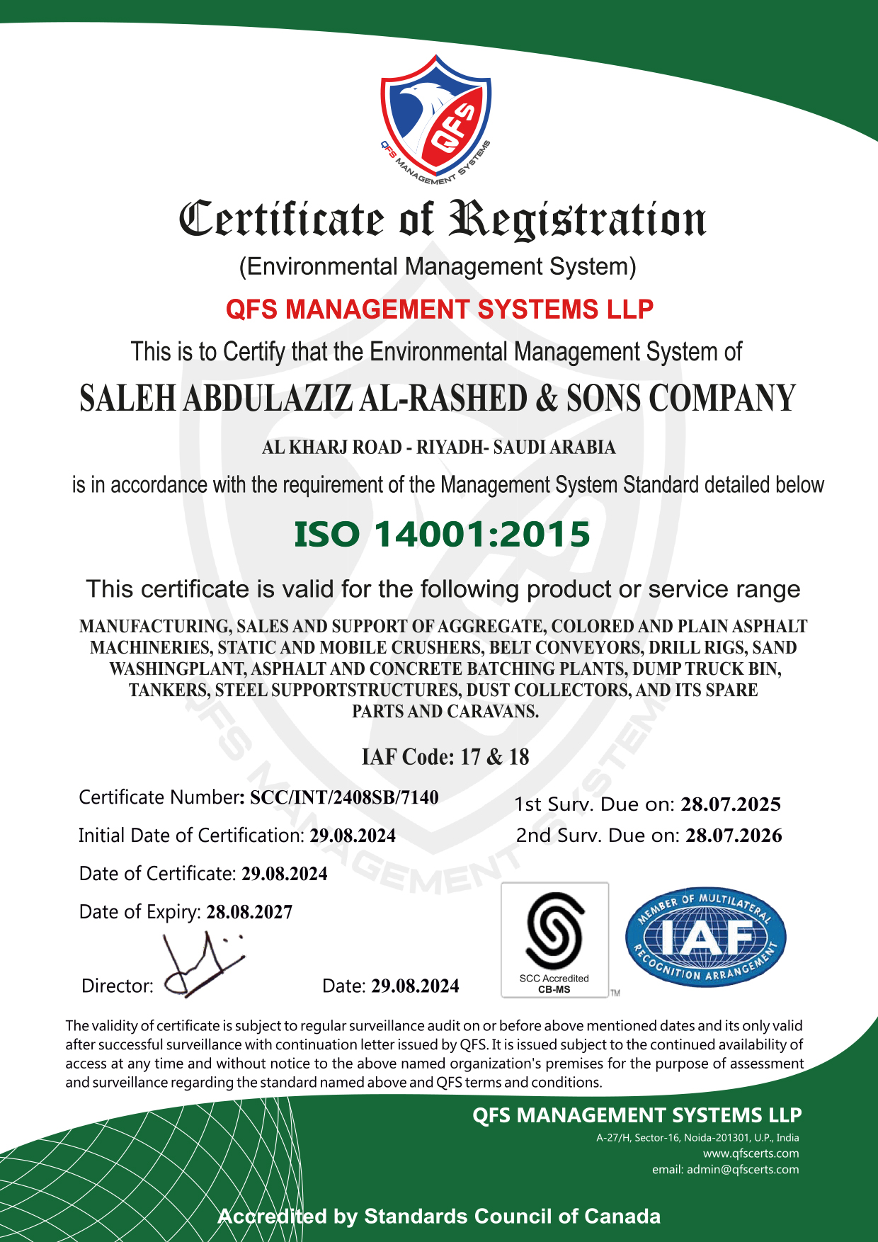 Obtaining ISO certificates is a significant achievement that showcases an organization’s commitment to excellence and continuous improvement. At Saleh Abdulaziz Al Rashed & Sons Co., we understand the importance of international standards in enhancing our operations and delivering high-quality products/services to our customers.